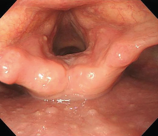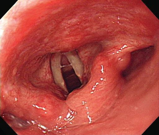 Ендоскопія гортані може виявити багато змін внаслідок подразнення слизової. Дифузна еритема, набряк і гіпертрофія міжчерпакуватої складки, а також бруківка є найбільш корисними знахідками для діагностики ЛФРХ. Індекс виявлення рефлюксу (Reflux Finding Score, RFS) – це клінічний інструмент, розроблений для кількісної оцінки запалення гортані та стандартизації об’єктивних ендоскопічних даних. RFS включає набряк підслизового шару, облітерацію шлуночків, еритему/гіперемію, дифузний набряк гортані, гіпертрофію міжчерпакуватої складки, наявність гранульом/грануляційної тканини та густого ендоларингеального слизу (загальна кількість балів варіює від 0 до 24).